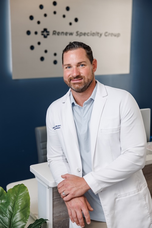 After building on 11 years of expertise in the medical field, he forged a new concept in patient care, Renew Specialty Group. “Medicine changes and we need to stay up with the times. I tell patients, you get a new cell phone every 6 months because your old one goes out of date and the technology is obsolete. Medicine is the same way,” he says. “We are always learning; technology advances and education never stops. Why would you want a treatment today that has not changed since the 1970’s? Because that is what is happening in today’s traditional medical culture. At Renew we have taken the initiative and time to stay up to date with all cutting edge treatments. We offer these to patients who no longer want outdated, cookie cutter medical care.